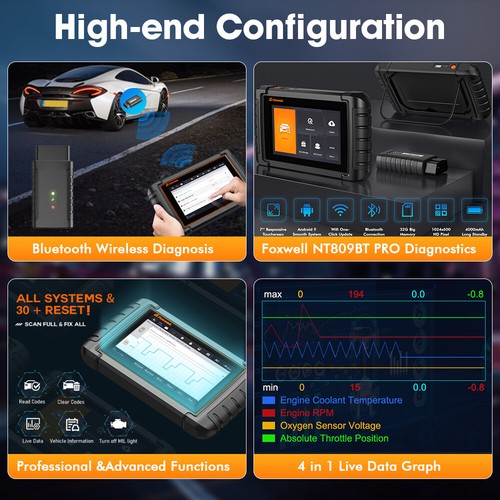 Foxwell NT809 BT Support Special Functions: 35+ Resets Service